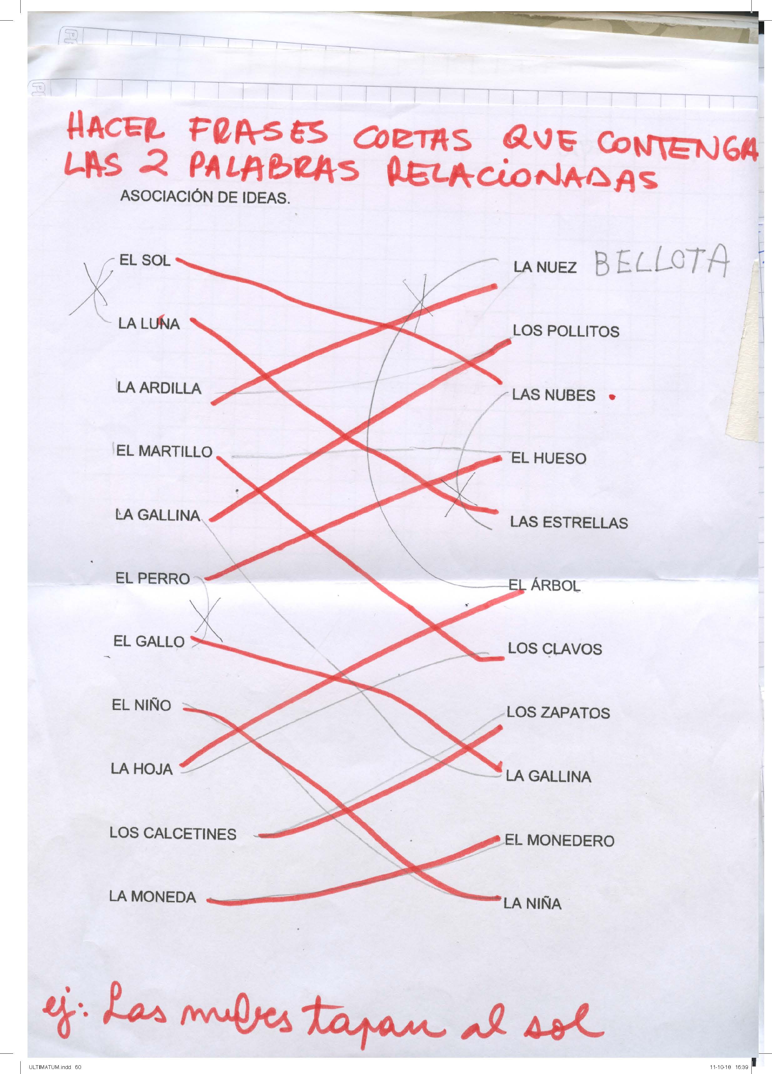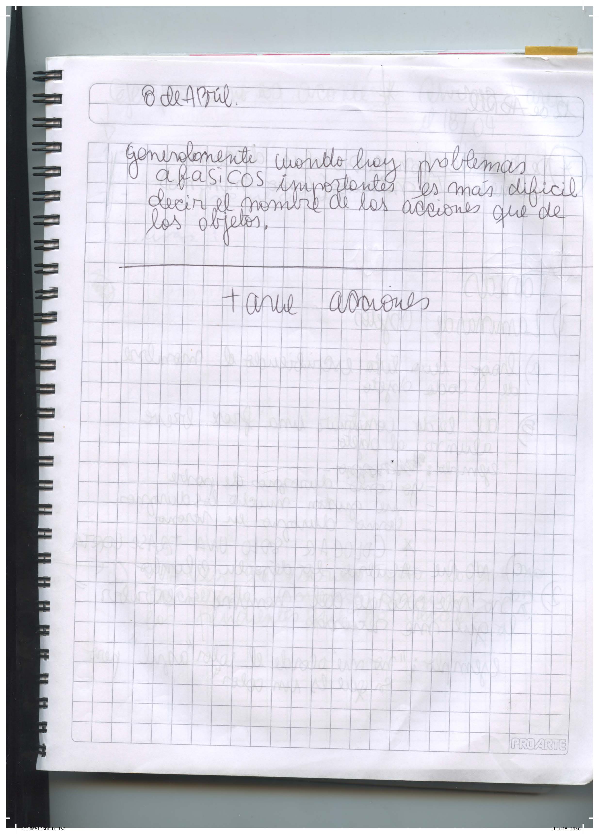Texto explicativo mas impresiones de jercicios de fonoaudilogía por afasia (trastorno de lenjuaje debido a lesiones cerebrales) realizadas el 2017 y el 2018, .